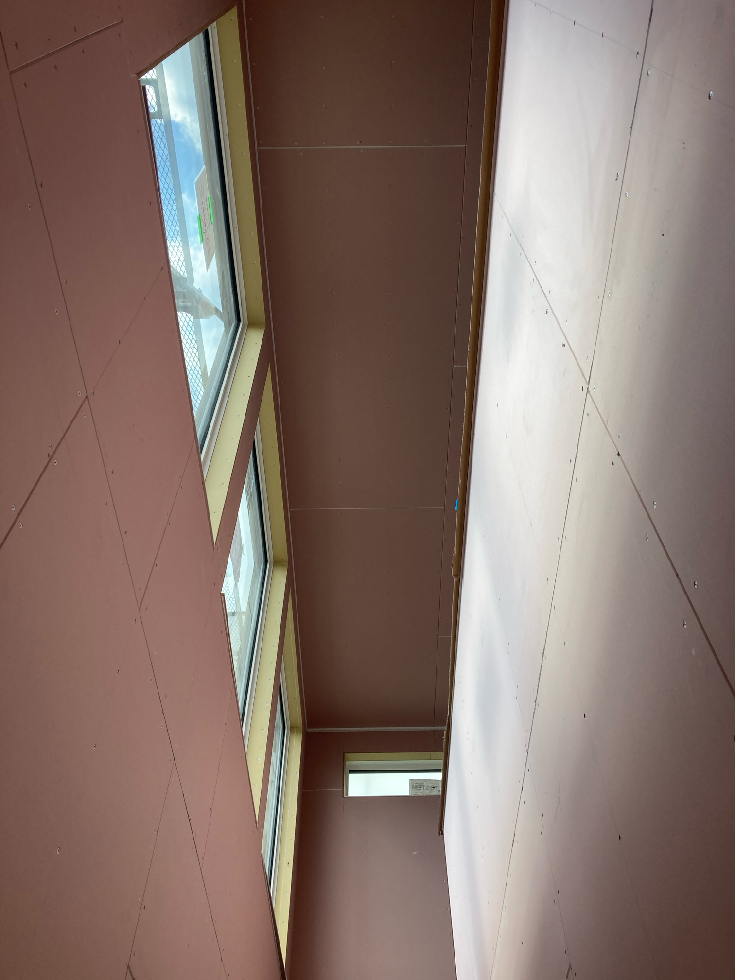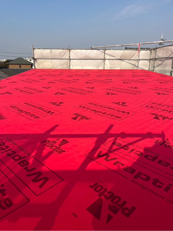 防湿シートを貼ることで吹付断熱の長寿命化と躯体内結露を防ぐ狙いがあります。 -