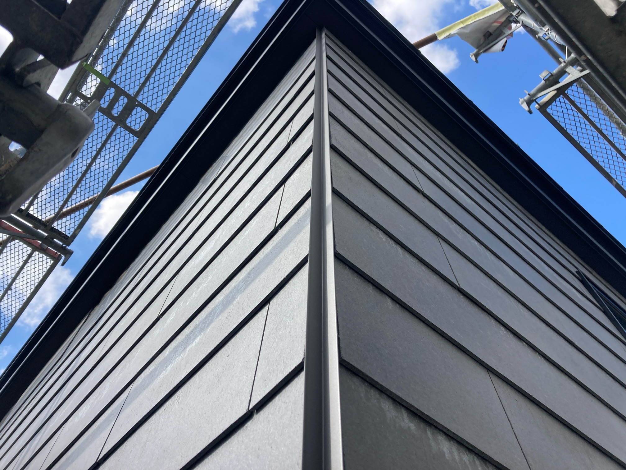 外壁は近隣に電車が通っていることでの鉄粉の付着を考慮し、ケイミューのSOLIDOを採用しました。