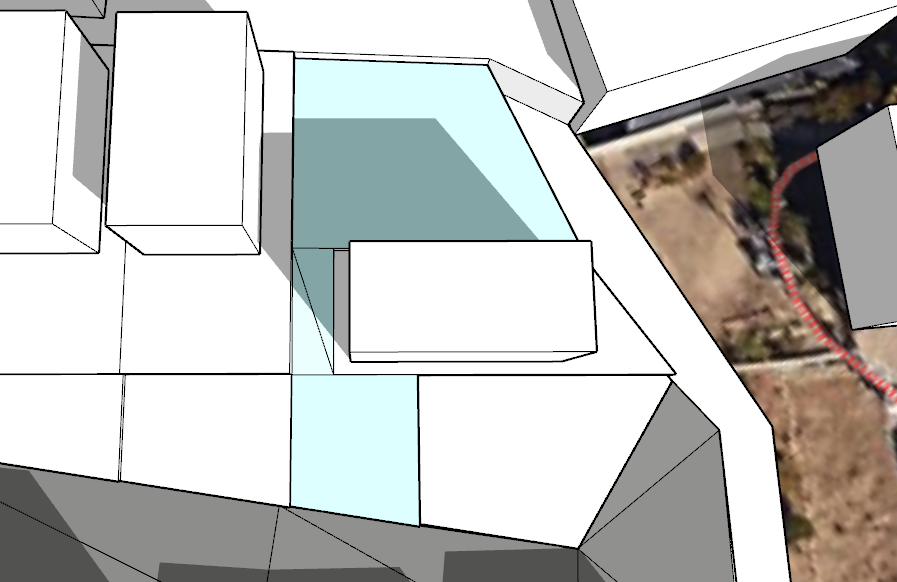 最寒日付近の1/15、高低差と隣地の建物を加味し日照シミュレーションをしてみると、